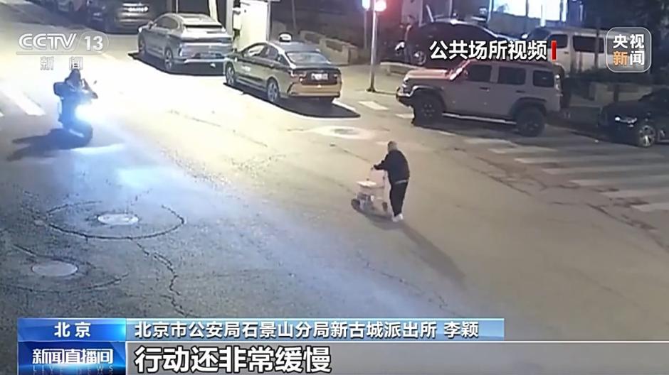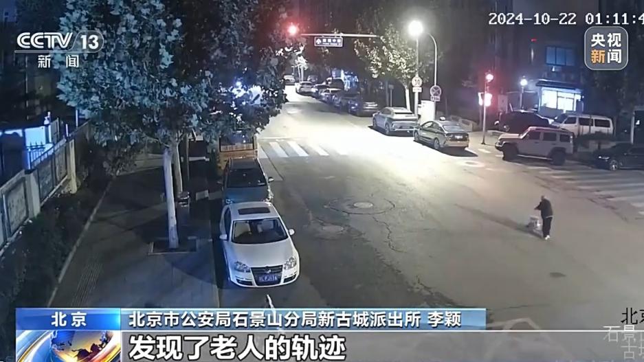 北京市公安局石景山分局新古城派出所 李颖:功夫不负有心东说念主,我们在凌晨1点的视频上,发现了老东说念主的轨迹。在燕堤小区中心的马路上,在推着一个小车在行走。