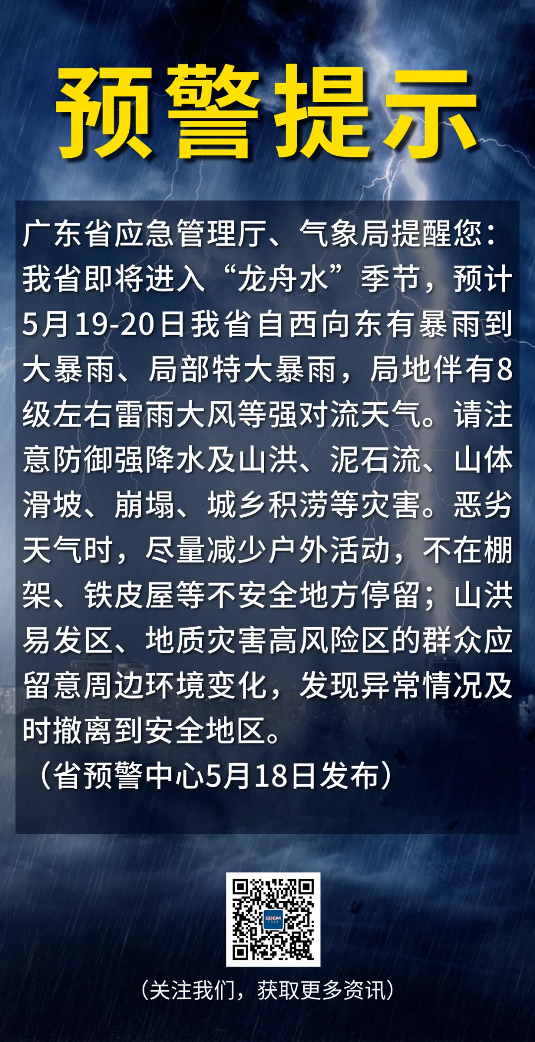 凭证《广东省防汛防旱防风防冻济急预案》和省防总关系划定,广东省防汛防旱防风总开拓部决定于5月18日12时启动防汛Ⅳ级济急反馈。